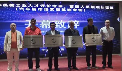 紧接着,由机械工业职业技能鉴定指导中心主任史仲光、机械行业职业能力评价汽车后市场实训基地主任王庆苗,为广州市白云工商技师学院、山西工程科技职业大学、深圳宝安职业技术学校、蚌埠汽车工程学校等14家已建成的考试站进行颁牌。