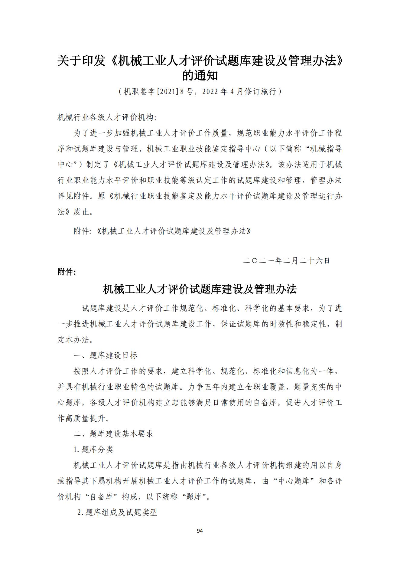 关于印发《机械工业人才评价试题库建设及管理办法》 的通知